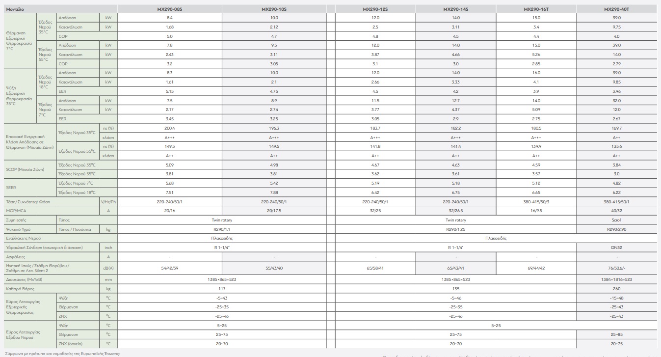 *Aφορά στο μοντέλο MX290-40Τ.