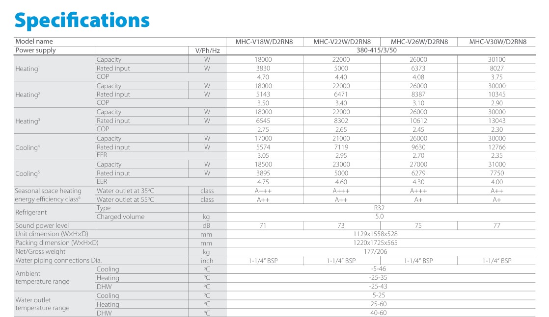 Midea M-Thermal Arctic Series MHC-V26W/D2RN8 Αντλία Θερμότητας Τριφασική R32 26kw 60°