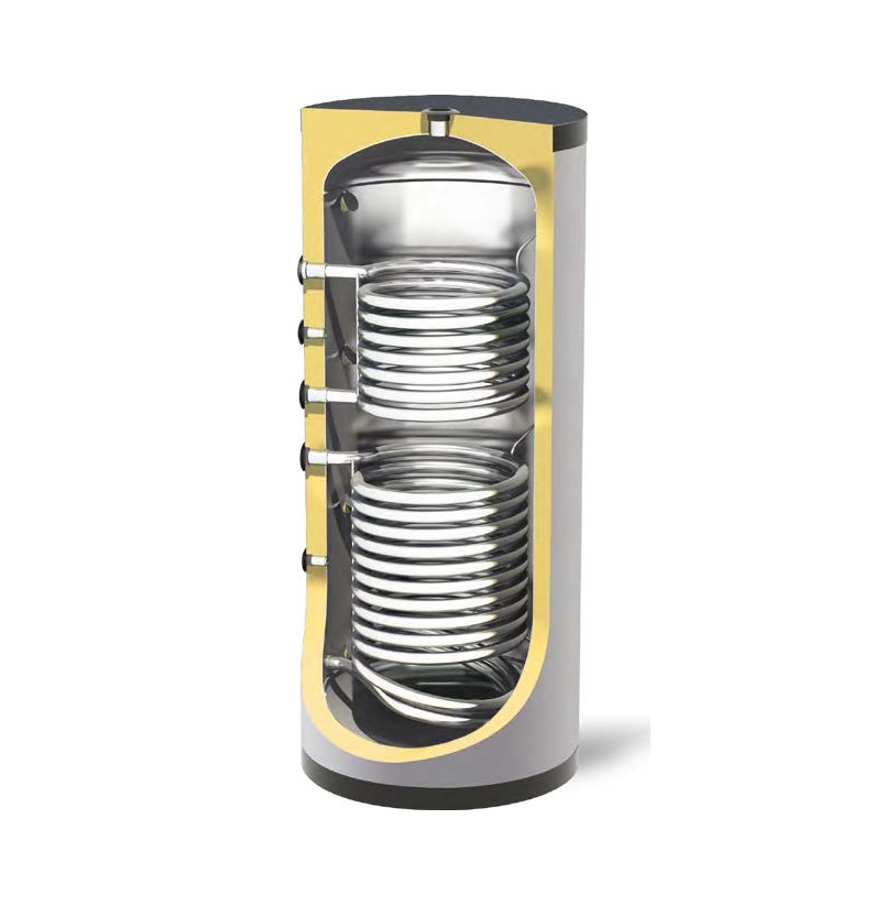 Nobel Δοχείο Αδρανείας 1000lt Buffer Λεβητοστασίου με 2 Εναλλάκτες Με Σμάλτο